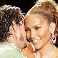 Durante las dos horas de show, J.Lo, sentada en el asiento de piedra, bailó, alzaba los brazos en señal de alegría, cantaba con él cada canción y se comportaba como una fanática.