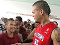 Como si fuera una fiesta de cumpleaños, tras saludarse, René y Wilbert se apoyaron en el piso para abrir el regalo (una computadora portátil) como viejos amigos y en medio de tanta gente lograron defender su espacio.