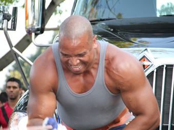 Over Campo Nieto, soltero, quien se define como una persona de carácter fuerte, pero dulce con sus amigos y amigas, que entrena dos horas diarias con pesas, logró jalar los camiones una distancia de 40 metros en tan solo 41 segundos.