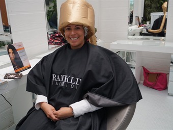 Después de tener el cabello largo, con iluminaciones, Tatiana cierra los ojos a la transformación.