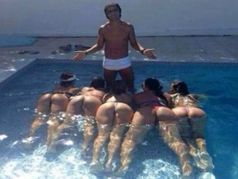 Esta imagen de Dinho en su casa de Barra da Tijuca, en la zona oeste de Río, causa polémica en las redes sociales. El 10 se ve feliz con gafas negras y un diminuto traje de baño blanco, rodeado de cinco mujeres con bikinis aún más diminutos que el de él dejando poco a la imaginación.