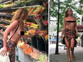 La joven no tuvo ningún inconveniente en pasearse por varias calles de Nueva York con una falda y en toples, las fotos las subió a su cuenta de Twitter.