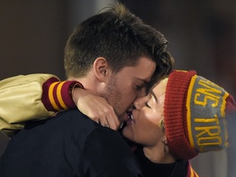 El noviazgo lo hizo público la pareja en el estadio de fútbol americano de Los Ángeles, donde muchos besos y algunos selfies dejaron muy clara la relación.