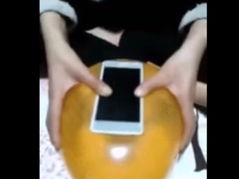 Luego se infla el globo y se coloca el teléfono encima. Cuidadosamente una persona mantiene el celular pegado al globo mientras otra sostiene el globo a la vez que este se desinfla. Poco a poco, el globo adquirirá la forma del iPhone y se convertirá en una rápida y económica carcasa.
