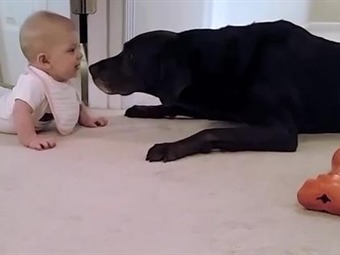 Los padres de esta hermosa bebé jamás se imaginaron que cuando empezara a gatear protagonizaría una de las historias más tiernas de su vida, la cual protagonizo al lado de su mascota, un labrador negro que imita los gestos de la pequeña.