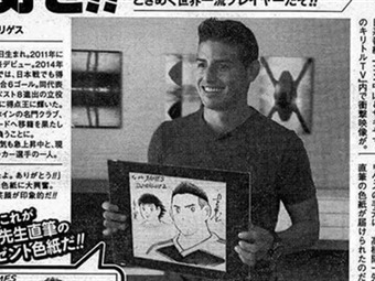 Yoichi Takahashi, creador de la serie de Supercampeones quiso brandarle un homenaje al volante del Real Madrid ilustrándolo en uno de sus trazos.