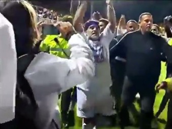 (Video) Maradona en pleno partido por la Paz, patea a un hincha
