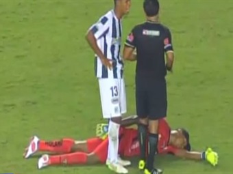 En pleno partido el jugador Máximo Banguera el meta del Barcelona de Guayaquil fingió estar inconsiente con el fin de evitar la sanción, el hecho sucedió frente al Atlético Nacional por Copa Libertadores.