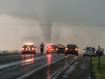 Las imágenes muestran el aterrador remolino de polvo que despertó la atención de los curiosos y que los obligó a bajarse de sus vehículos para captarlo con sus cámaras.