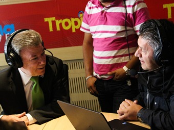 También hubo espacio para el humor y Juan Manuel Santos mostró su lado cómico contando chiste y riendo con todo el equipo del Tropishow de Tropicana.
