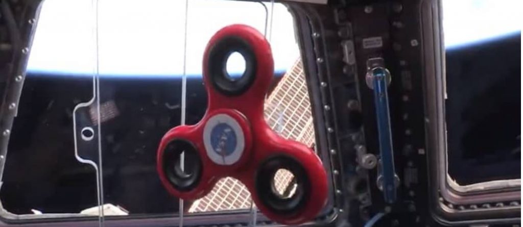 A fidget spinner in space! How long does it spin? I’m not sure, but it’s a great way to experiment with Newton’s laws of motion! pic.twitter.com/5xIJDs2544