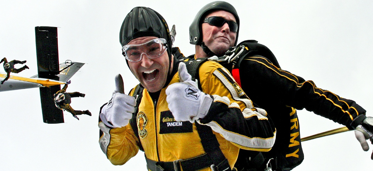 Nada sirvió y al final el sujeto saltó luego de en voz alta hacer el conteo regresivo, los notables nervios de los testigos se convirtieron en emoción al ver que el paracaídas había funcionado a la perfección.