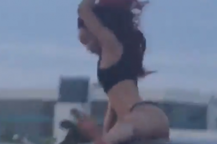 Ella que decidió viajar sobre el techo de un carro, se puso a bailar, pero no solo eso, lo hizo en bikini.