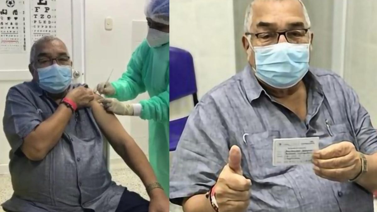 Con un gran sentido del humor y alivio, el maestro Alci Acosta recibió la vacuna contra el Covid-19, enfermedad que padeció a finales del 2020, y que desafortunadamente se llevó a su esposa, Ruth Agudelo, el 17 de noviembre de ese año.