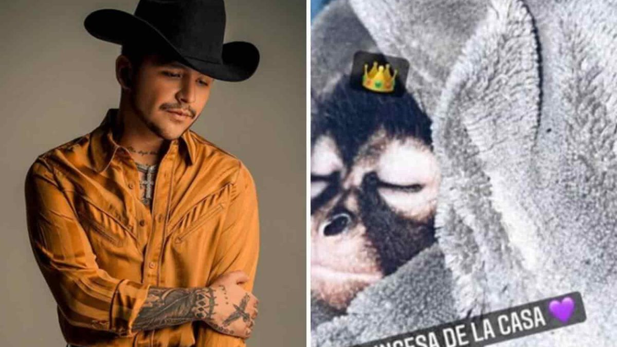 El cantante de música regional mexicana Christian Nodal compartió a través de sus redes sociales que tiene una nueva mascota: un mono araña a quien llamó Piaf.