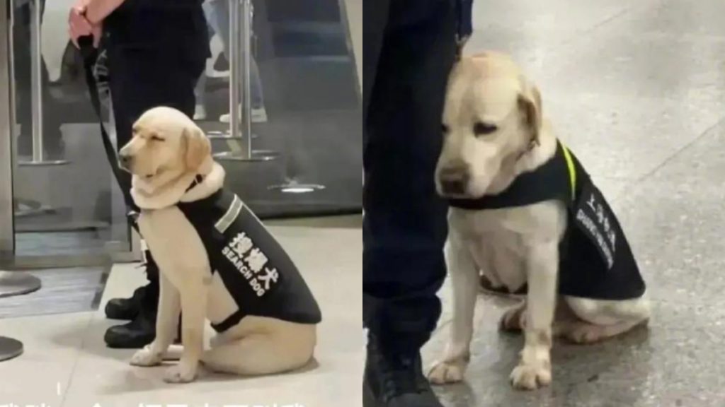 En una de las estaciones del metro de Shanghai, China, se encontraba el perrito de búsqueda y seguridad, el cual estaba tan agotado que no pudo evitar quedarse dormido.
