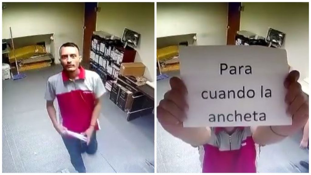 El hombre que aparece en Facebook como Josue Santiago aprovechó que estaban encendidas las cámaras de seguridad de la oficina y le pidió un regalito a su superior.