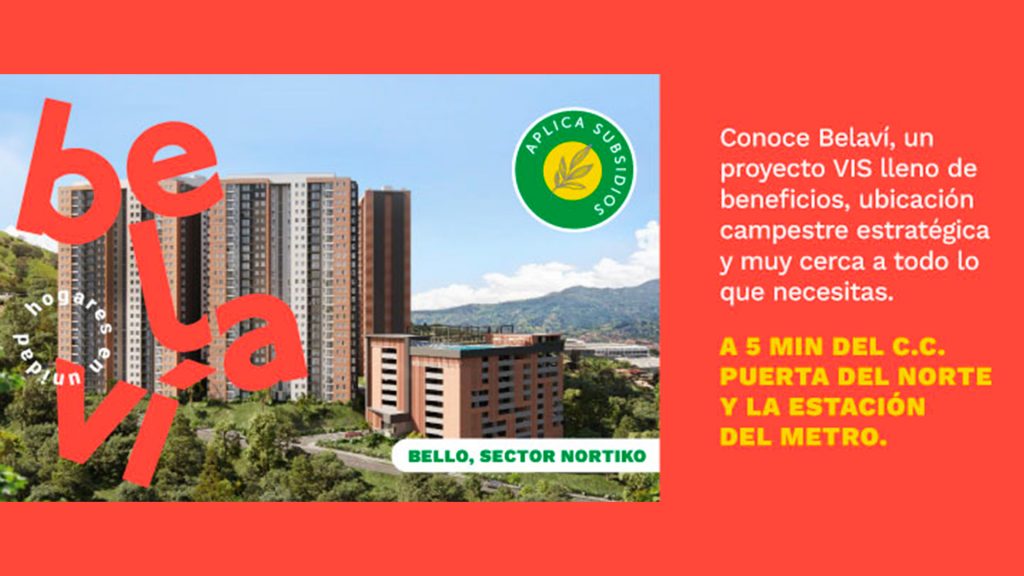 Así nace Belaví Hogares en unidad, un proyecto VIS con una ubicación estratégica en el sector Nortiko: a solo 5 min del Centro Comercial Puerta del Norte y la estación del metro Niquia, además está muy cerca a municipios turísticos de la región.
