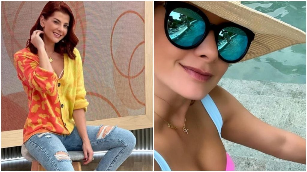A través de redes sociales, la presentadora publicó varias imágenes en las que se mostró disfrutando con su hijo en la piscina, así como de ella bronceándose.