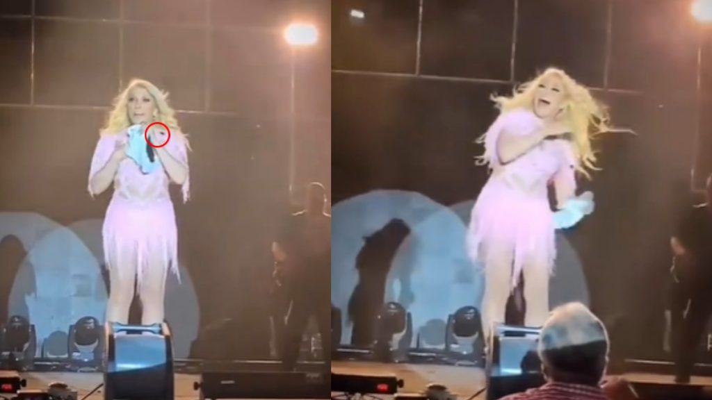 Cuando la artista logra darse cuenta de la situación, empieza a gritar y saltar un poco hasta que logra que el insecto caiga al piso, donde no teme en pisarlo para que no molesté más. El hecho causó bastante gracia, incluso para ella.