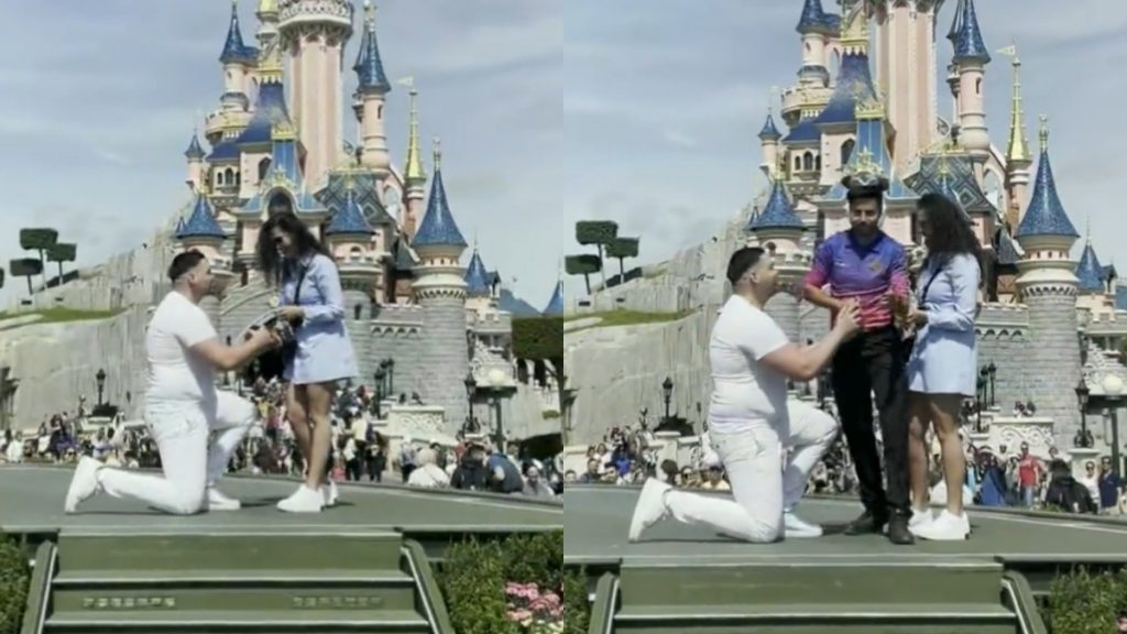 Por eso, causó indignación cuando se interrumpió la petición de un hombre. En el video, se puede ver cómo él está preparado para hacer la importante pregunta a su novia y de la nada aparece un empleado de Disney.
