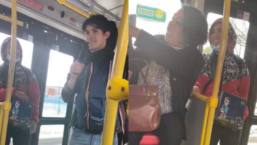 Quedó registrado que la mujer, quien lo grababa sentada desde una de las filas del bus, le indicaba qué decir: “Diga, a ver”. A lo que el joven reveló que debería pagar un correctivo por colarse.