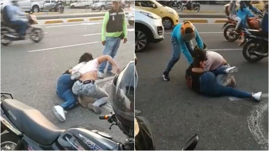 Al parecer la discusión habría iniciado por tema monetario, como se le oyó decir a una de las mujeres durante la polémica escena. El hecho ocurrió en la carrera 17 con calle 45, en medio de una congestionada vía de la ciudad, pues en la grabación se aprecia hileras de vehículos y motociclistas esquivando a las mujeres.