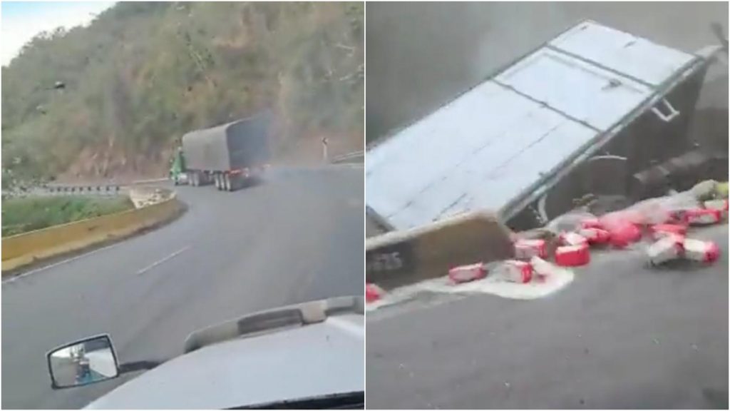 Vidoe: Tractomula perdió los frenos y se volcó