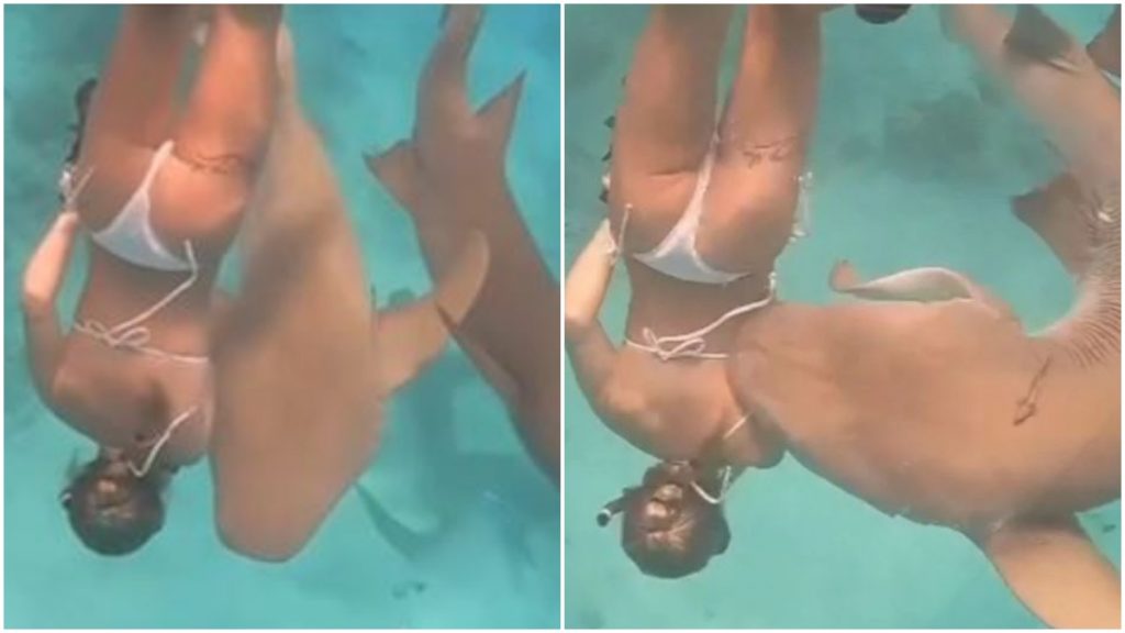 A través de redes sociales se viralizó un video de una joven cuando fue mordida por un tiburón, cuando estaba buceando.