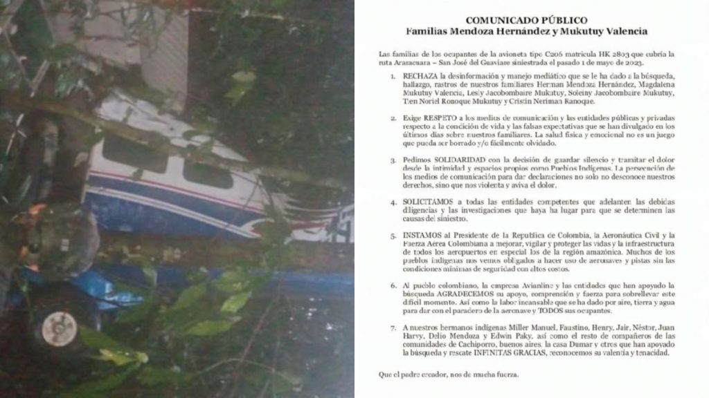 Sin embargo, hasta el momento no se ha podido establecer comunicación de manera oficial con las Fuerzas Militares debido a las “condiciones meteorológicas y a las dificultades del terreno”. Por su parte, los familiares de los menores emitieron un comunicado exigiendo respeto y solidaridad por la situación que atraviesan.