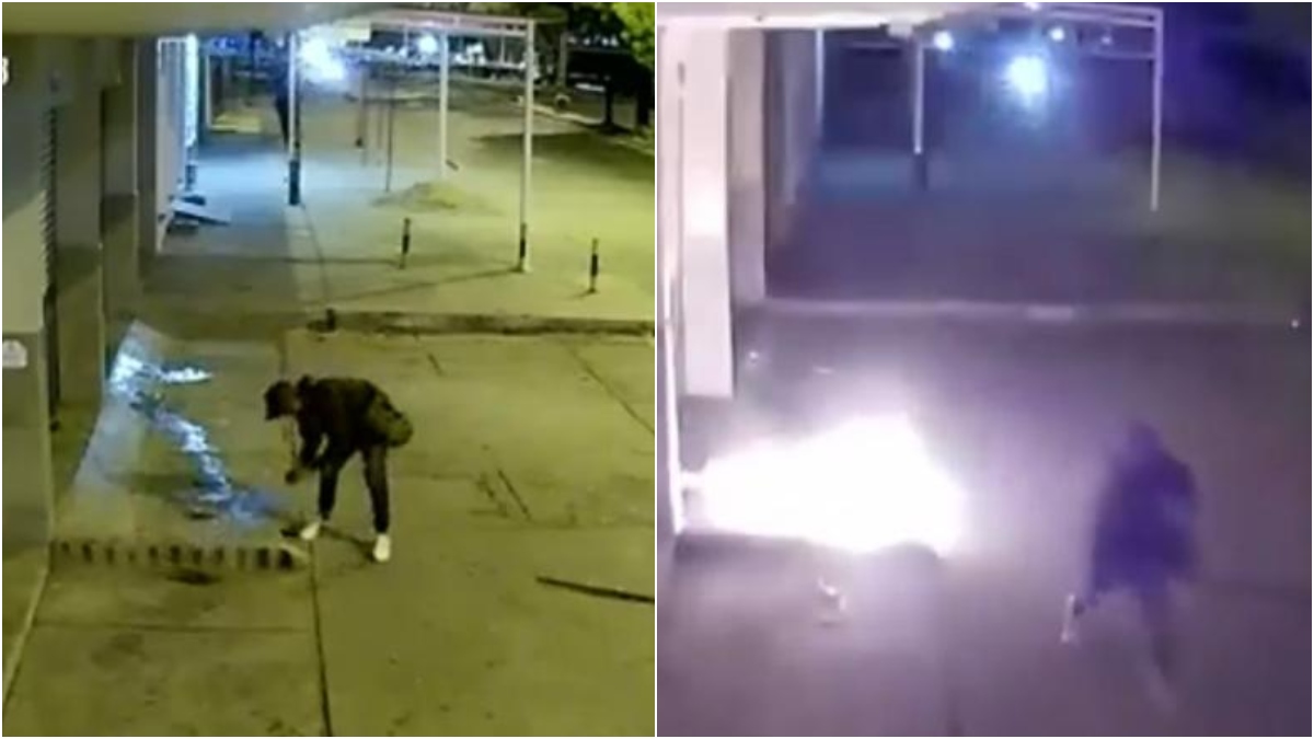 La escena fue registrada por cámaras de seguridad del sector y se logra apreciar el momento en que un sujeto se acerca al negocio y tras rociarlo con gasolina le prende fuego. Luego de que las llamas crecieran en dirección al portón del negocio, el hombre emprendió la huida.