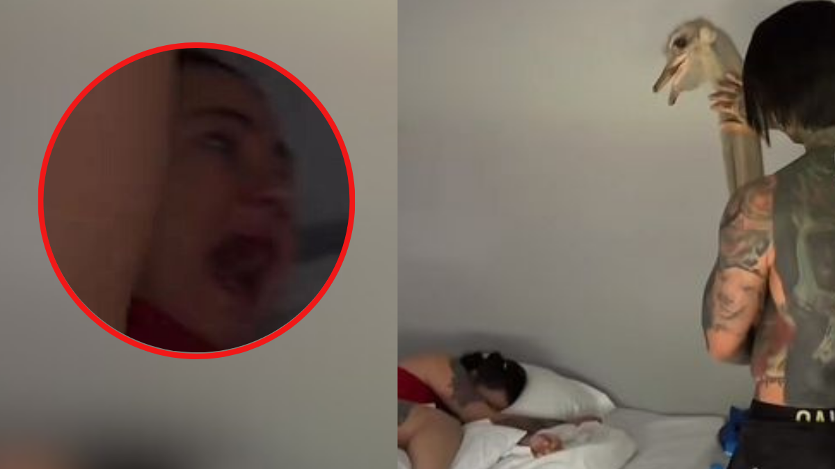 En la grabación se evidencia el momento en el que el paisa ingresa a la habitación en compañía de un avestruz y otras personas. En el cuarto se puede ver a la creadora de contenido dormida mientras que Cossio incita al animal para que tenga cercanía con la mujer. En el momento en que la modelo siente un picotazo en la mano, grita y sale corriendo a encerrarse en el baño.