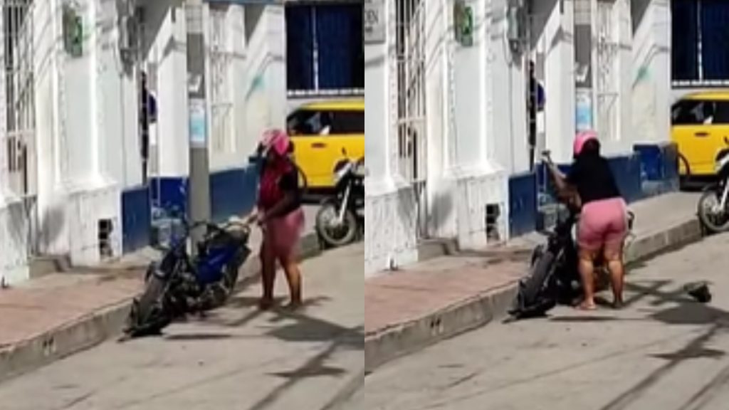 El curioso momento tuvo lugar en el Centro Histórico de Santa Marta, donde transeúntes quedaron con la boca abierta al presenciar cómo la mujer arremetió contra la motocicleta que estaba parqueada a un costado de la vía.
