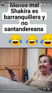 “Menos mal Shakira es barranquillera y no santandereana”, escribió.