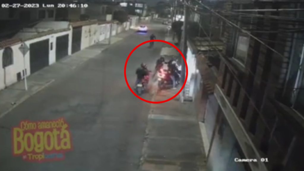 Los robos y la inseguridad en Bogotá parecen no tener fin, cada vez se conocen casos nuevos que dejan sorprendidos y temerosos a los habitantes. En video quedó registrado el momento en que una banda criminal aborda a un joven que llega a su casa, lo intimidan y le roban la moto y demás pertenencias.