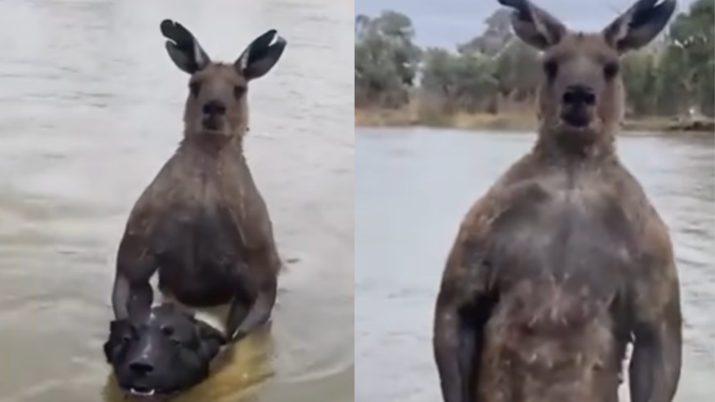 En la grabación se observa cómo el canguro tiene agarrado por el cuello a uno de los perros del hombre y lo tiene sumergido en el agua. Sus gestos y su actitud muestran que el animal estaba muy molesto.