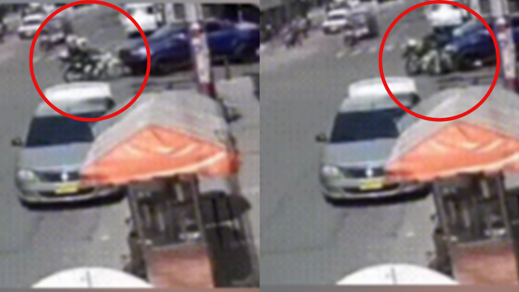 En las primeras imágenes, se observa a una camioneta azul que va a doblar hacia la izquierda. Mientras hace esto, repentinamente aparece una moto con dos policías, la cual presuntamente iría a alta velocidad, y se choca con el vehículo. El impacto es tan fuerte, que ambos policías salen volando de la moto y caen al suelo, varios metros más adelante.