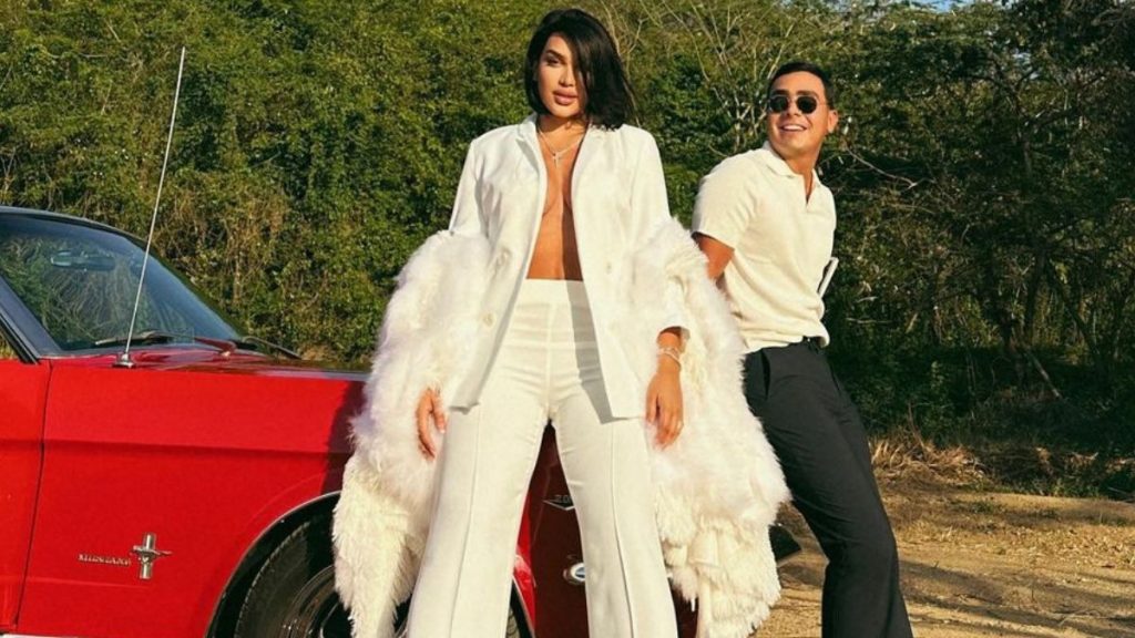 Valdiri publicó fragmentos del emotivo video en el que los dos lucieron atuendos similares. La creadora de contenido lució una peluca color negro a la altura de sus hombros y un conjunto de pantalón y blazer blanco, abierto a la altura de su busto.
