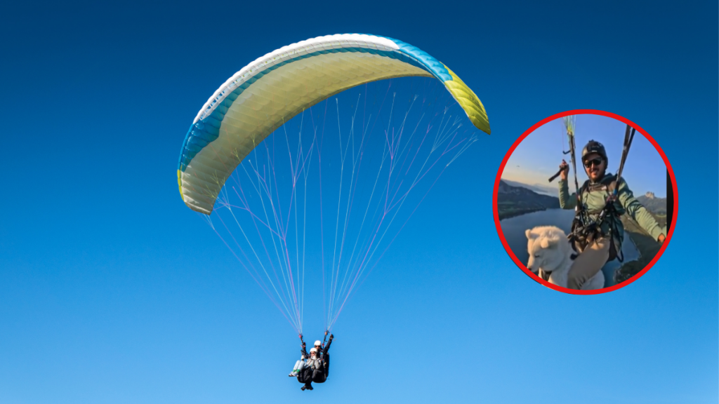 “¡Qué peligro!”: críticas a hombre que saltó con su perro en paracaídas