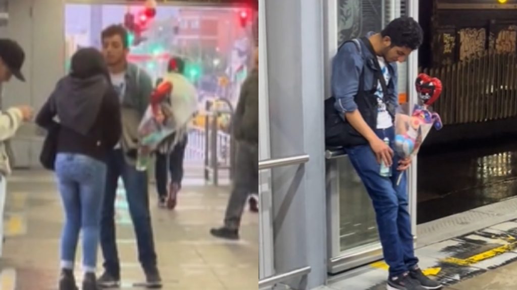 Los hechos se registraron en una de las estaciones más concurridas de Bogotá, la estación Fucha de la troncal de la Caracas, donde usuarios presenciaron el momento en un hombre llegó con flores, chocolates y hasta media de aguardiente en mano a declararle su amor a una mujer.