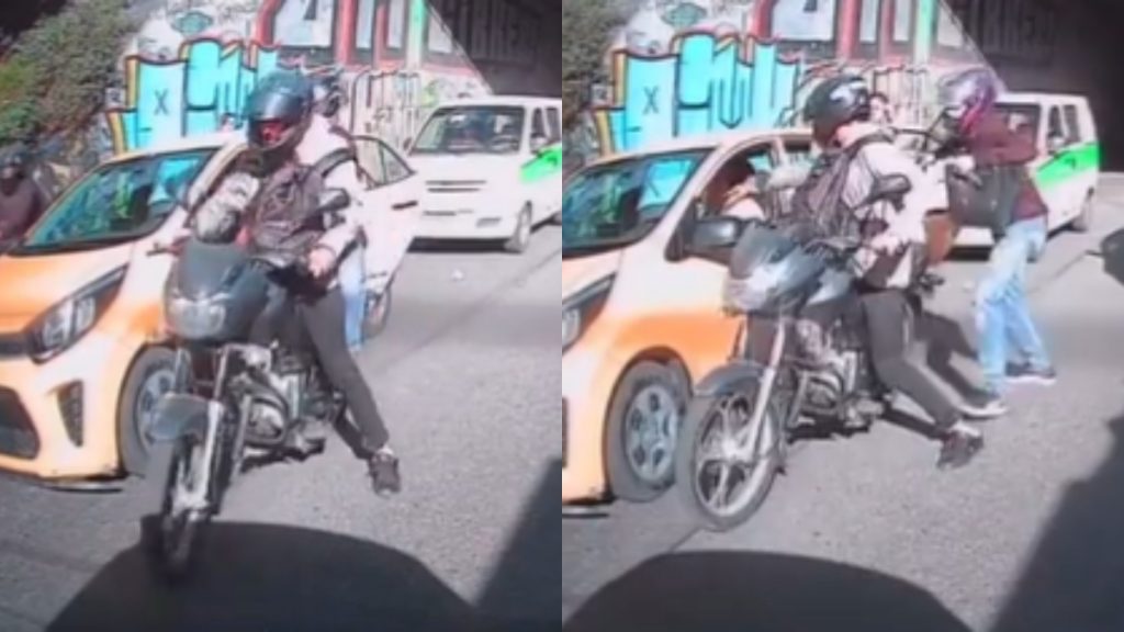 VIDEO: a plena luz del día delincuentes en moto robaron a taxista y sus pasajeros