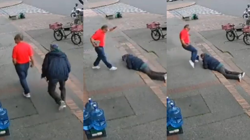 VIDEO: Hombre agarró a patadas a adulto mayor que se tropezó e intentó sostenerse de él