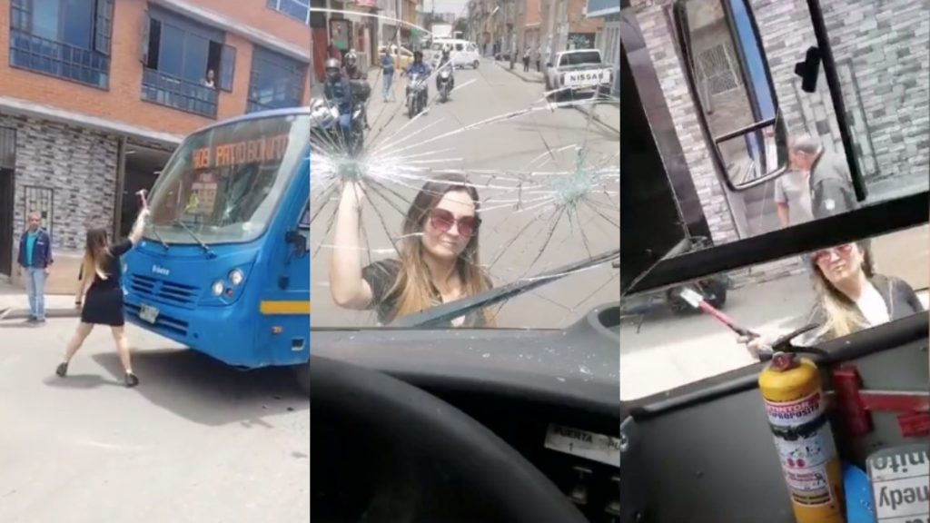 Como se observa en los videos que rápidamente se hicieron virales en redes sociales, ante el pequeño siniestro, la reacción de la mujer fue sacar un martillo de su automóvil y comenzar a destruir a martillazos el SITP, rompiendo los vidrios panorámicos, ventanas, luces y más.