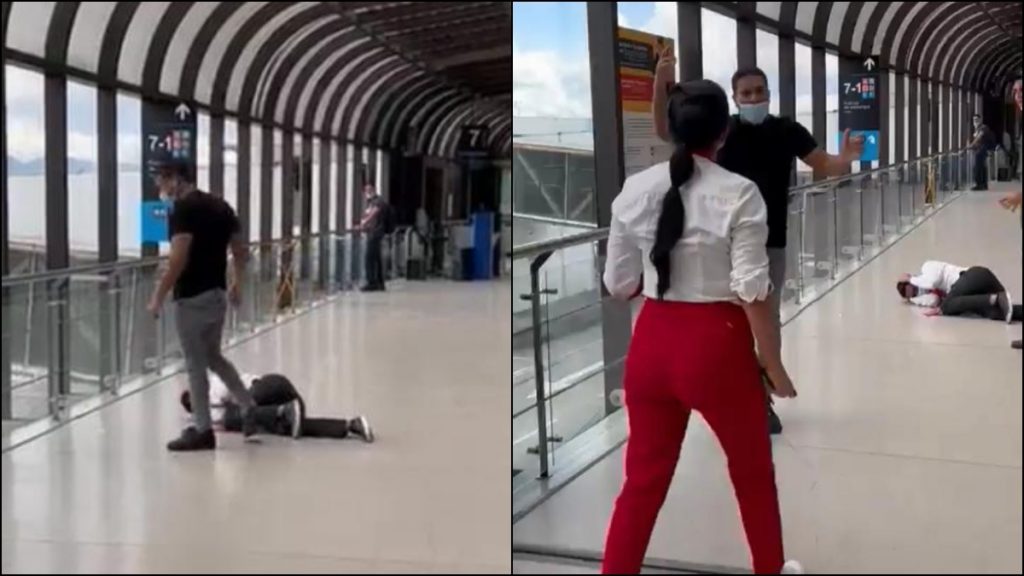 El hecho sucedió en el aeropuerto José María Córdova de Rionegro y quedó registrado en video el momento en que el sujeto dejó al funcionario tendido en el piso.