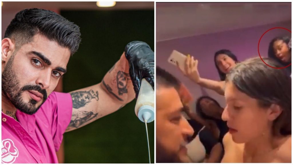 Una de las primeras imágenes que se viralizó fue el de una mujer que asistió al lugar, se bajó la blusa y dejó que le besaran los senos. En el clip se ve como el trabajador del lugar llenó los pechos de leche condensada y procedió a besarlos.