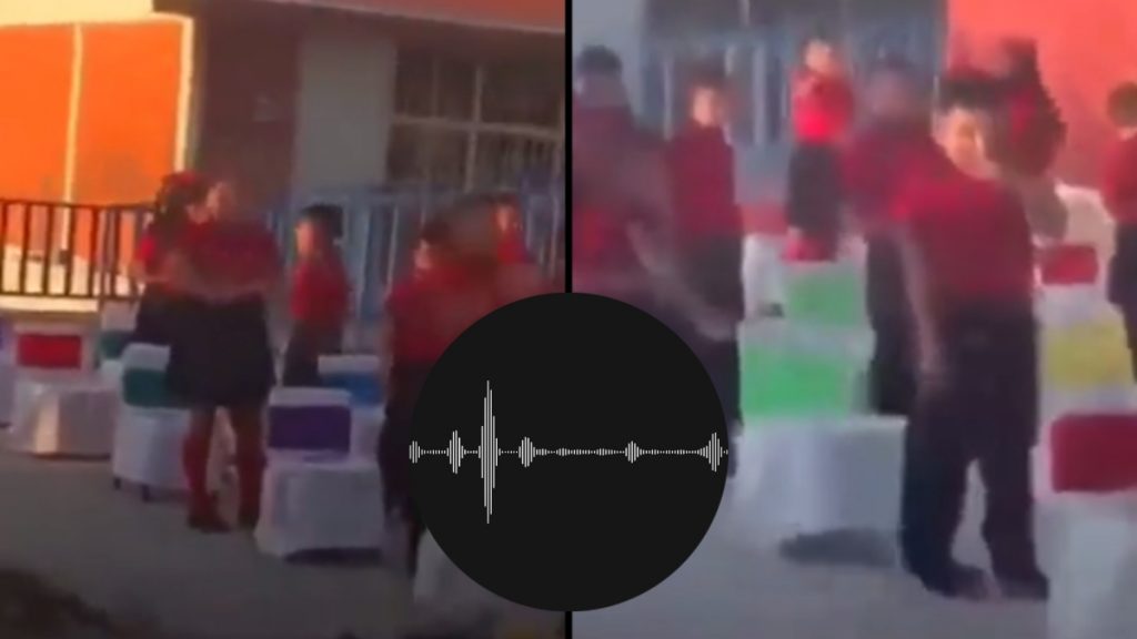 En video quedó registrado el momento en que, en pleno evento, la maestra puso un audio con contenido erótico frente a sus estudiantes y los padres de familia de todo el colegio.