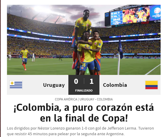 El seleccionado Nacional disputará la final de la edición 48 de la Copa América con Argentina tras vencer este miércoles 0-1 en Charlotte a la selección uruguaya.
