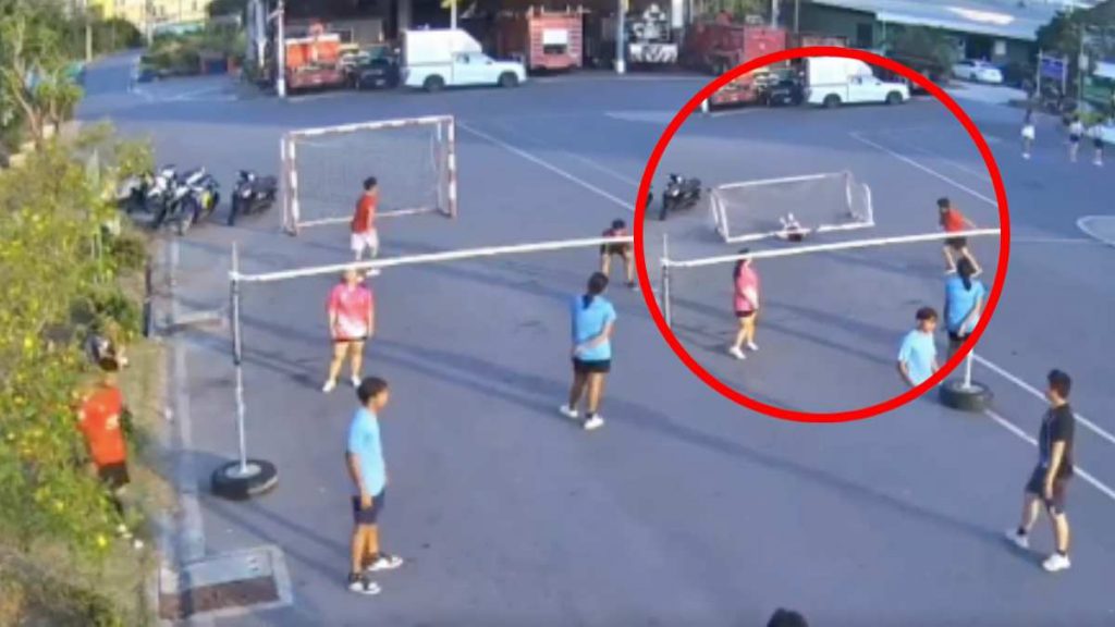 En el video que se hizo viral en redes sociales, se ve a un grupo de estudiantes practicando lo que parecía ser voleibol, cuando de un momento a otro Khiawpo se aleja del grupo y se acerca al arco de fútbol que estaba tras ellos.