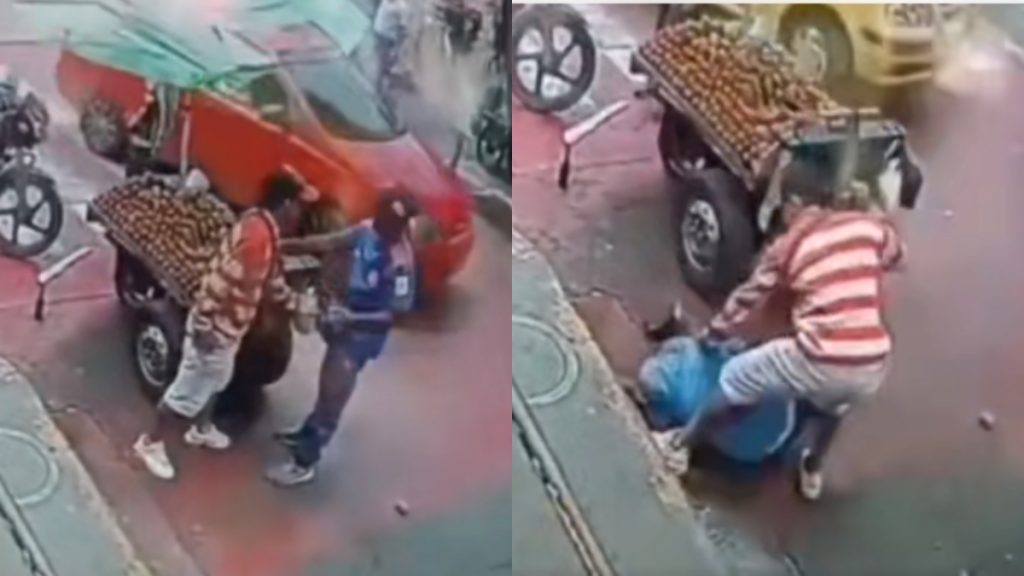 De acuerdo con testigos del hecho, incidente se desencadenó luego de que sin querer y en medio de un descuido, el vendedor golpeara con su carreta una moto.