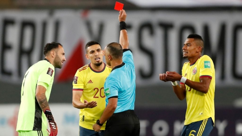 El defensor colombiano reaccionó con un golpe y vio la tarjeta roja